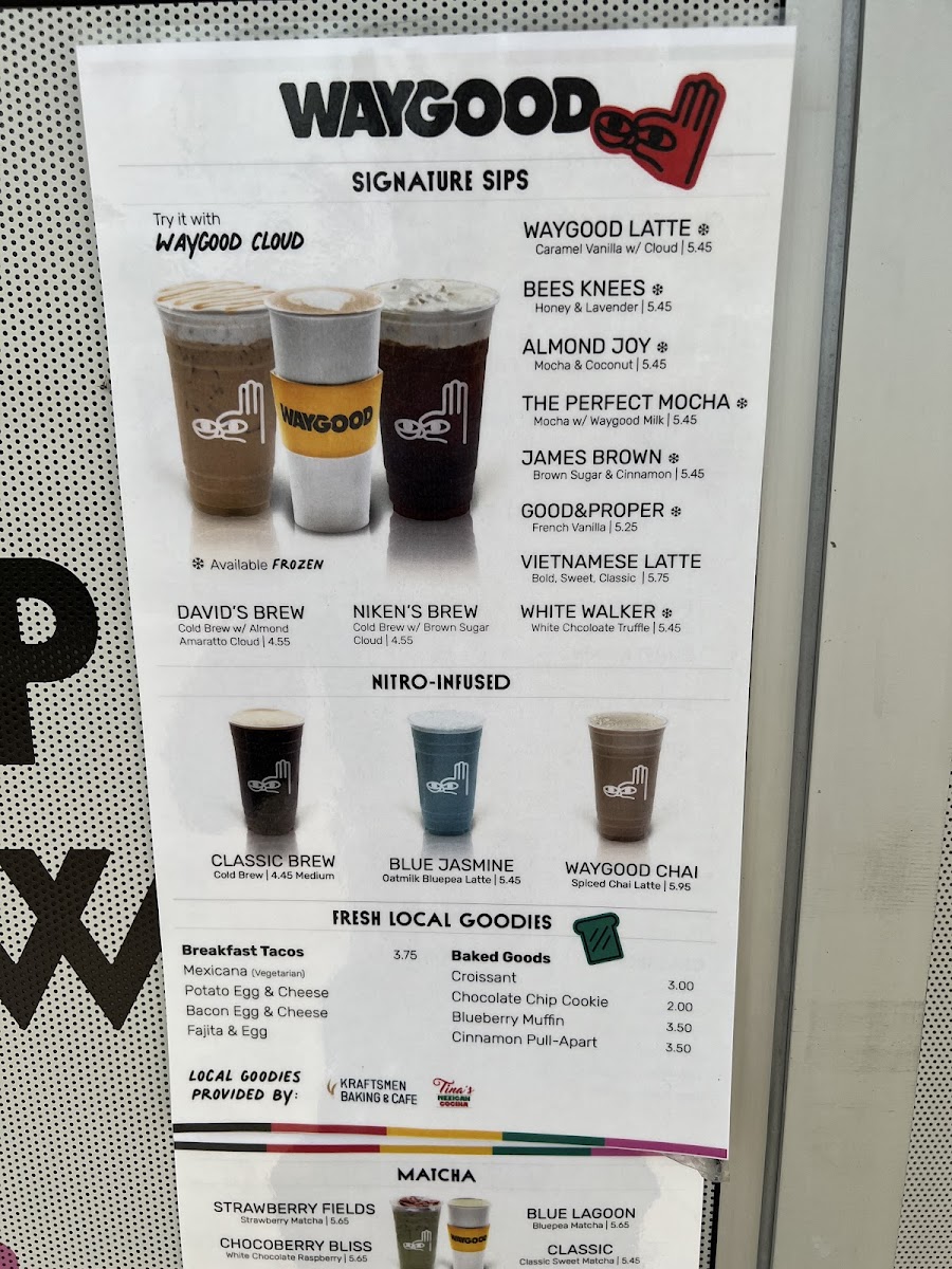 Waygood - Coffee Shop in Pearland, TX, invites coffee lovers to indulge in expertly crafted beverages complemented by warm hospitality. Their signature Matcha Lattes, offered with creamy oat milk and delightful twists like honey and lavender, stand out as highlights—each sip smooth and refreshing. Beyond coffee, the menu features crave-worthy breakfast tacos, adding a savory balance to the morning offerings.